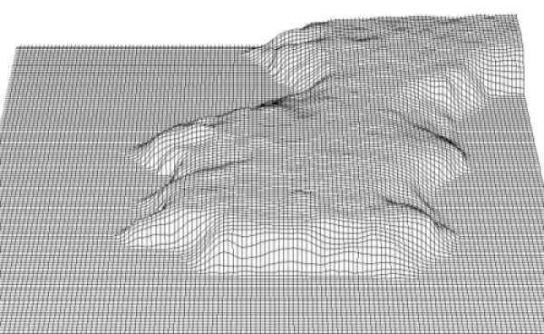Figure 1 A : Les différentes étapes de la préparation d'une base terrain et d'une texture. Exemple à partir d'un extrait de 128 x 128 mailles du MNT de la Bretagne à pas de 20 mètres.