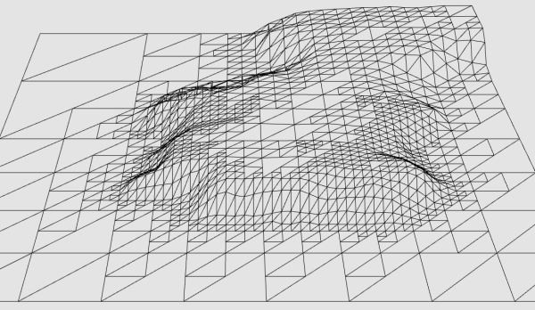 Figure 2 E : Les différentes étapes de la préparation d'une base terrain et d'une texture. Exemple à partir d'un extrait de 128 x 128 mailles du MNT de la Bretagne à pas de 20 mètres.