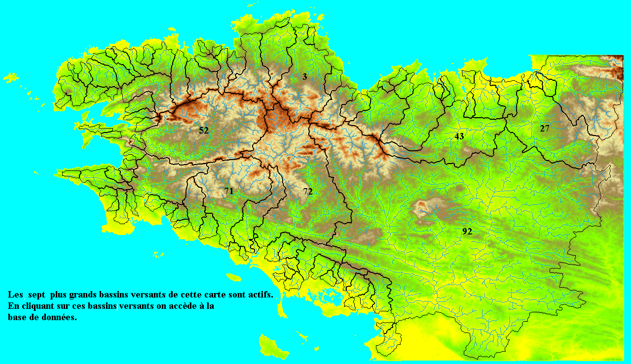 Hypsométrie de la Bretagne avec les 94 bassins versants de plus de 2 000 hectares