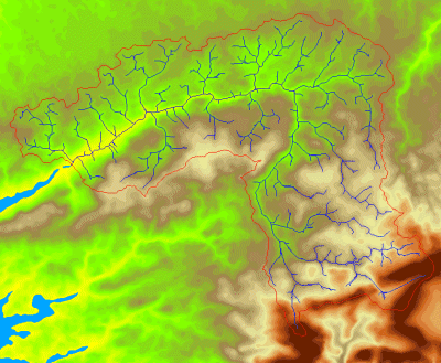 Le réseau hydrographique estimé ou modélisé est un sous-ensemble du réseau de drainage monodirectionnel. Le réseau hydrographique estimé ou modélisé peut différer localement du réseau hydrographique vrai.